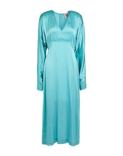 Woman Midi Dress Turquoise Size 8 Acetate, Silk In Blue