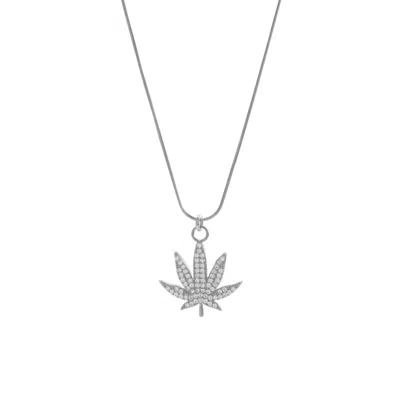 Women's M.j. Leaf Pave Necklace White Rhodium Over Sterling Silver