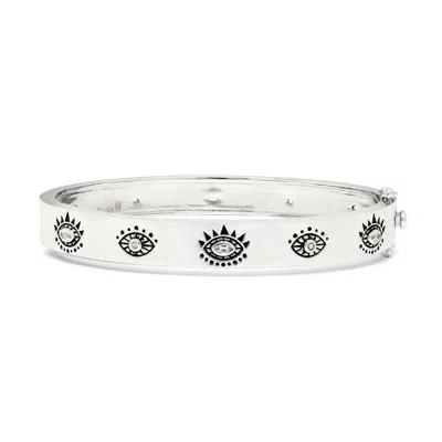 Women's Silver Evil Eye Protection Bangle, White Rhodium, Blue & White Topaz In Metallic