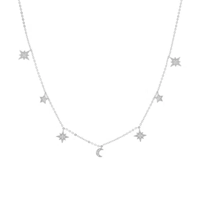 Women's Silver Heavenly Realms Moon & Stars Choker, White Rhodium