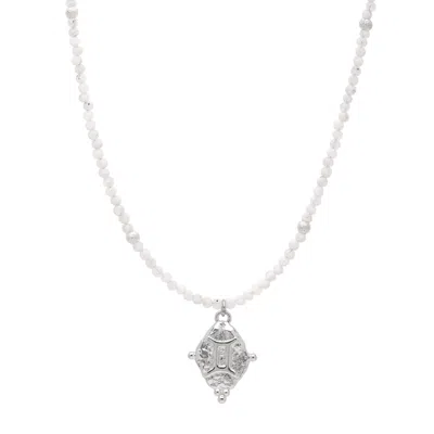 Women's White / Silver Gemini Gemstone Choker Necklace, White Moonstone, White Rhodium Plated In Metallic