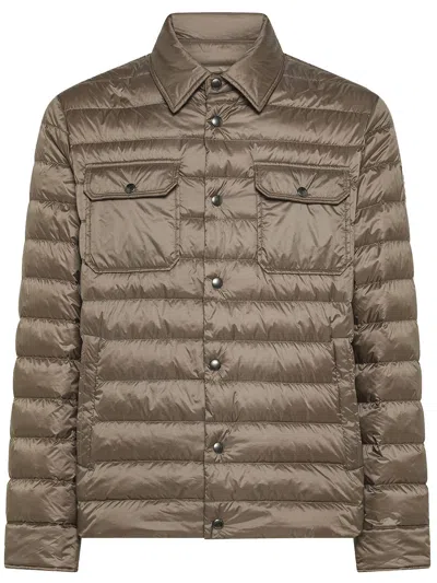 High Collar Coat Front Pockets Ribbed Cuffs In Neutral