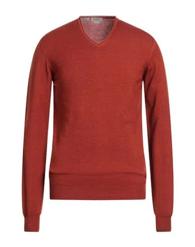 Sergio Tegon Man Sweater Rust Size L Virgin Wool, Elastane In Red