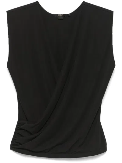 Black Stretch Top With Gathered Detailing