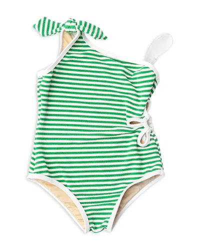 Girls' Green Stripe Ribbed One Piece Swimsuit - Little Kid, Big Kid