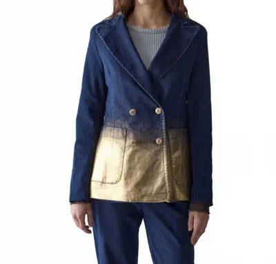 Stretch Denim Blazer With Paint In Blue