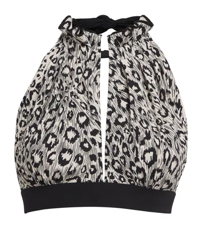 Leopard Print Halterneck Bikini Top In Black