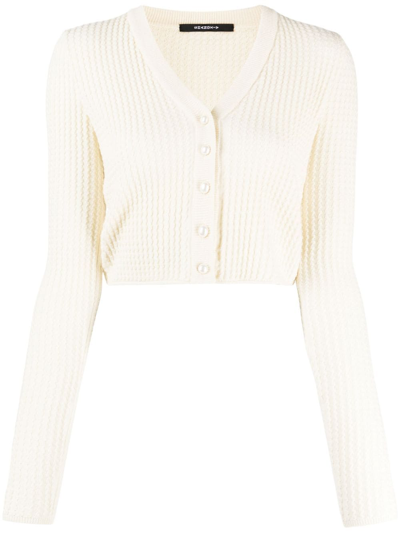 V-neck Ribbed Cardigan In Weiss