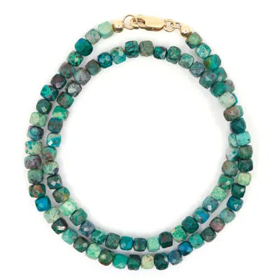 Men's Blue / Gold / Green Chrysocolla Cube Wrap Beaded Bracelet In Multi
