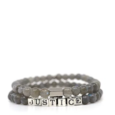 Men's Grey / Silver Labradorite & Sterling Silver Justice Letters Beaded Bracelet Set In Gold