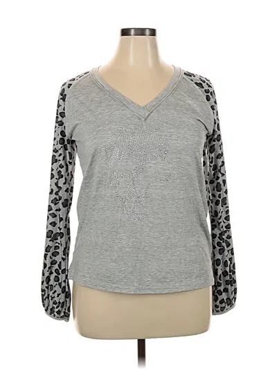 Pre-owned Long Sleeve Top Gray V Neck Tops