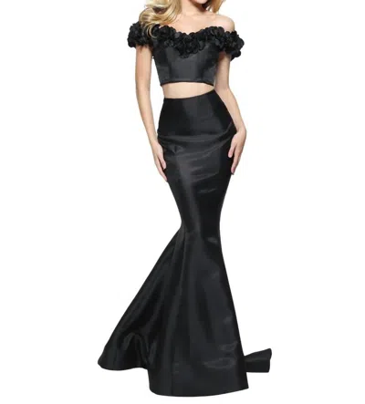 Two-piece Floral Prom Dress In Black/red Print In Multi