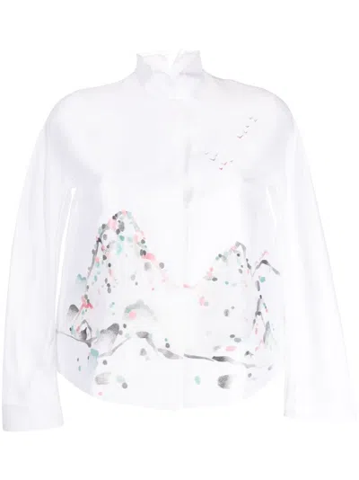 Graphic-print Silk Jacket In White