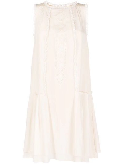 Silk Lace Panelled Dress In Neutrals