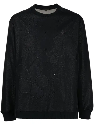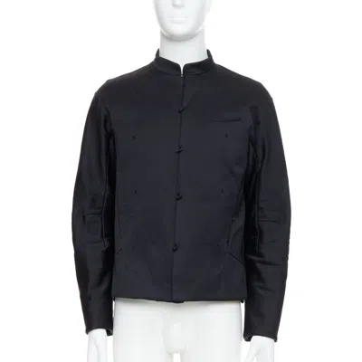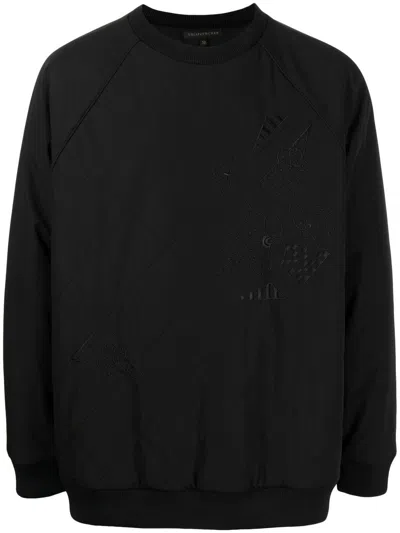 Cotton Blend Silky Embroidered Padded Coat In Black