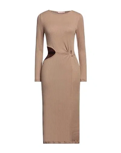 Shopart Woman Midi Dress Camel Size S Viscose, Polyester, Polyamide, Elastane In Beige