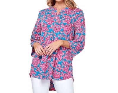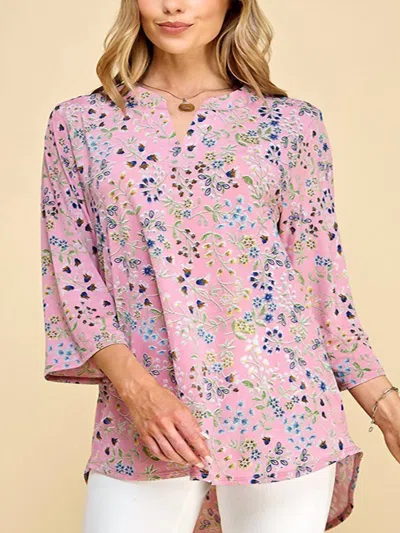 Floral 3/4 Sleeve Loose Fit Top In Pink In Multi