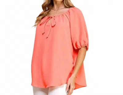 Puff Sleeve Woven Top In Peach In Pink