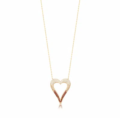 Women's Gold / Pink Pave Ombre Cut Out Heart Necklace - Pink In Multi