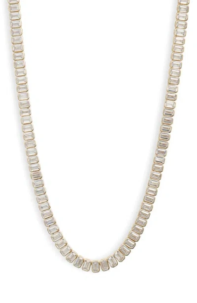 Emerald Cut Tennis Necklace In Gold/white