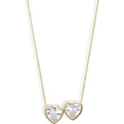 Mini Heart Bezel Pendant Necklace In Gold/white/emerald Cut