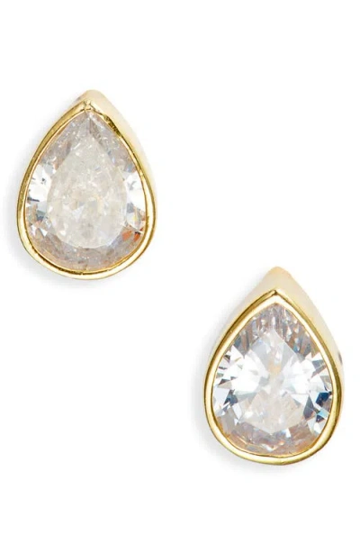 Fancy Bezel Stud Earrings In Gold/white/pear Cut