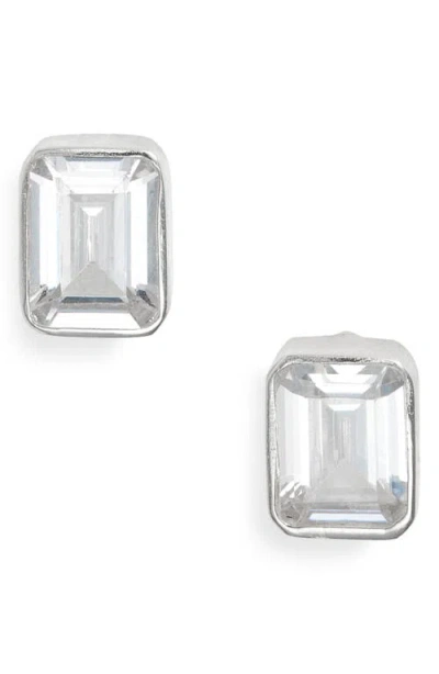 Fancy Bezel Stud Earrings In Silver/white/emerald Cut