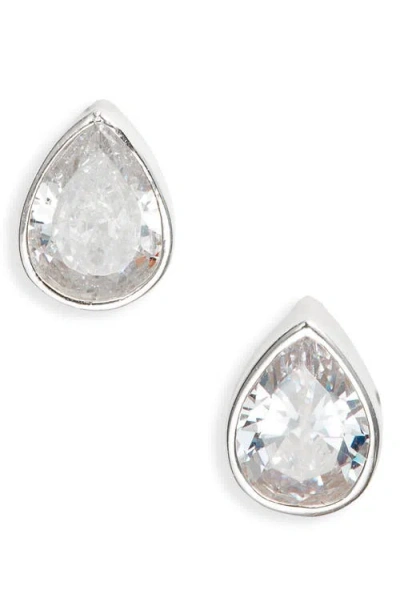 Fancy Bezel Stud Earrings In Silver/white/pear Cut