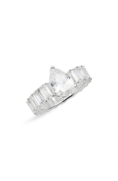 Pear & Emerald Cut Cubic Zirconia Eternity Ring In Silver/white