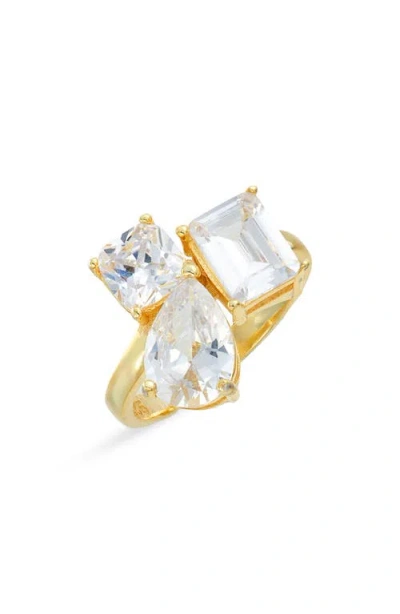 Multicut Cubic Zirconia Bypass Ring In Gold/white Stone