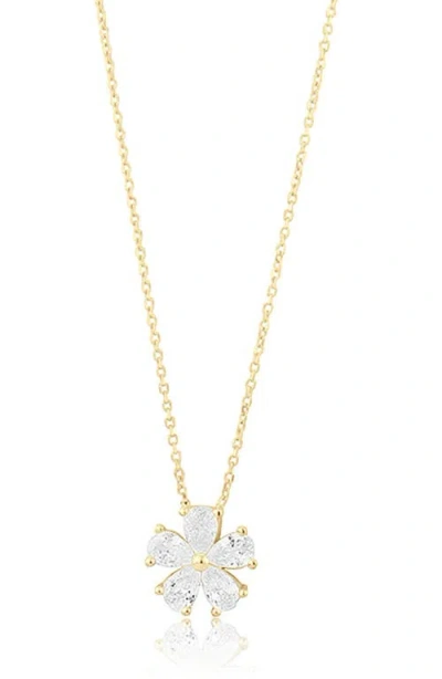 Cubic Zirconia Flower Pendant Necklace In Gold