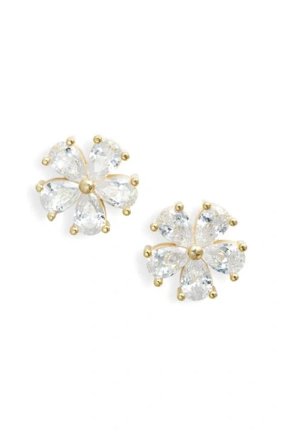 Flower Cubic Zirconia Stud Earrings In Gold