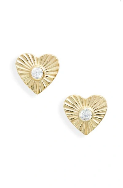 Fluted Heart Cubic Zirconia Stud Earrings In Gold