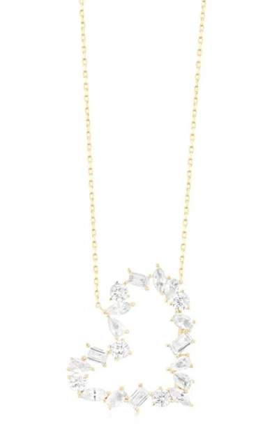 Mixed Cubic Zirconia Open Heart Pendant Necklace In Gold