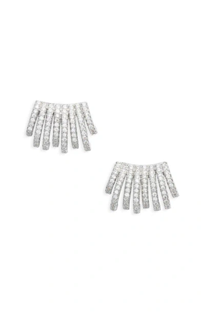Pavé Cubic Zirconia Caged Huggie Hoop Earrings In Silver