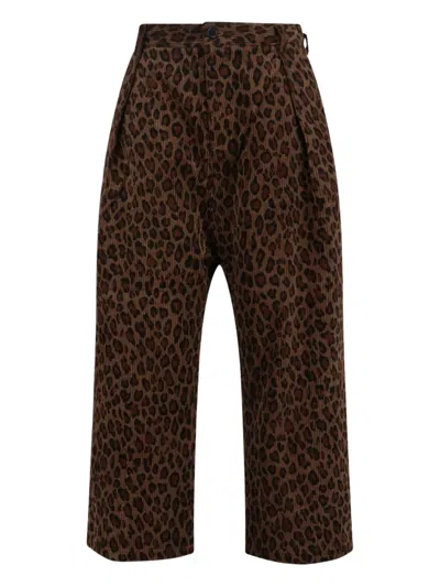 Cropped Trousers With Bold Leopard Print In Animal Print