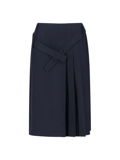 Navy Wool Midi Skirt With Pleated Detail In Blue