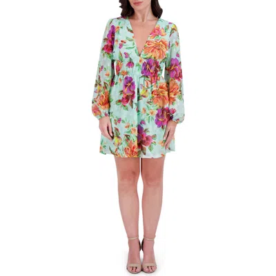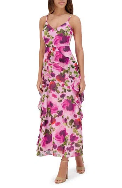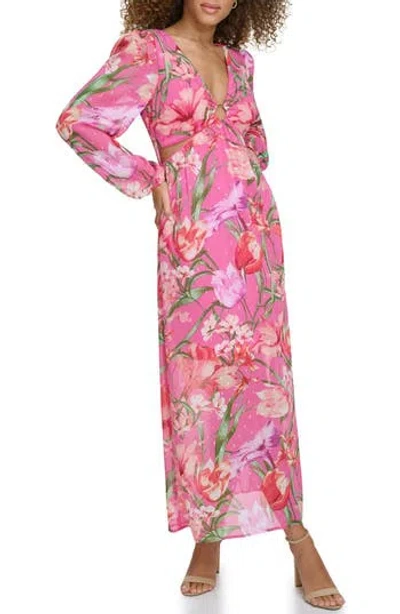 Floral Long Sleeve Clip Dot Maxi Dress In Pink Multi