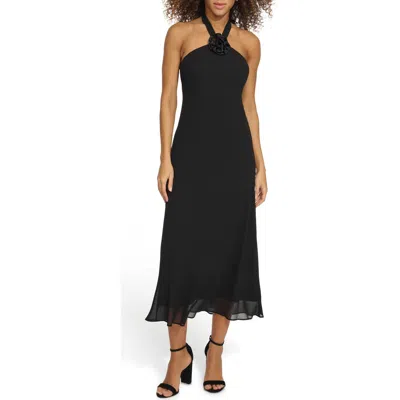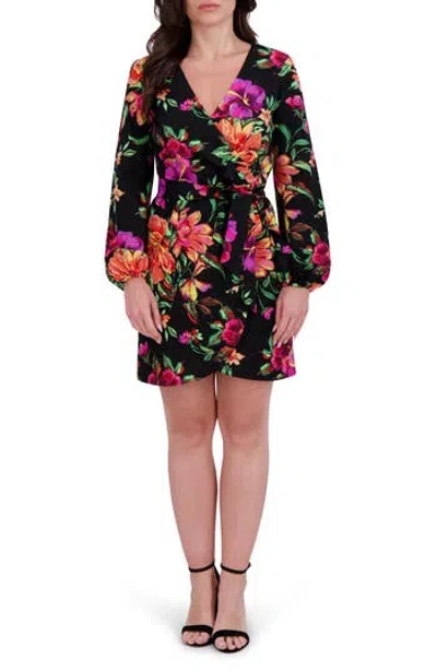 Floral Metallic Stripe Long Sleeve Faux Wrap Midi Dress In Multi