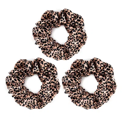 Women's Black / Rose Gold / Neutrals Leopard, Black & Caramel Skinny Scrunchies In Multi