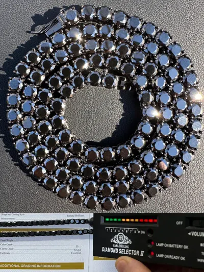 Pre-owned Real Black Moissanite Big 7mm Tennis Chain 925 Iced Necklace Pass Tester