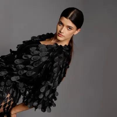 Women's Black One Layer Tulle Top With Volumetric Applications