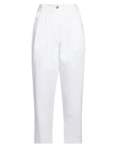 Woman Pants White Size 10 Polyester, Elastane In Neutral