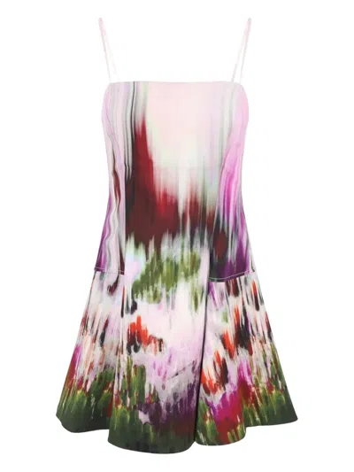 Floral-print Skater Mini Dress In Pink