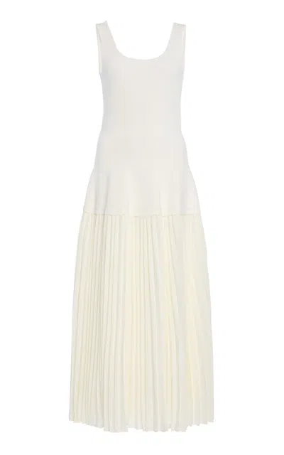 Allana Pleated Georgette And Ribbed-knit Midi Dress In White