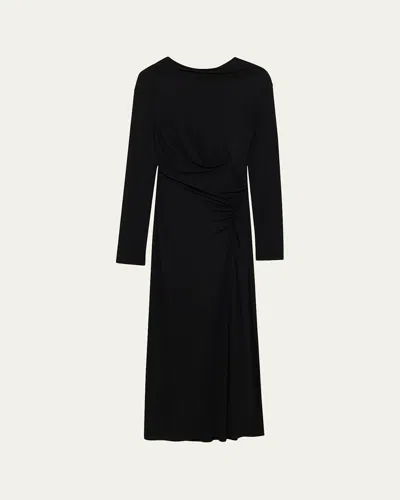 Ferrera Ruched Long-sleeve Midi Dress In Black