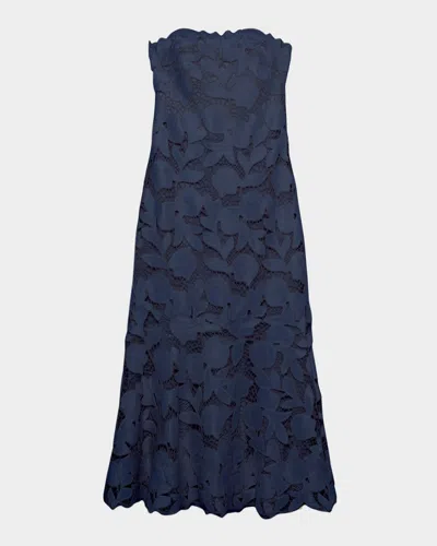 Valletta Strapless Floral Lace Maxi Dress In Blue