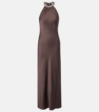 Embellished Satin Gown In Brown