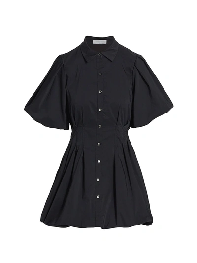 Cleo Pleated Gathered Cotton-blend Mini Shirt Dress In Black