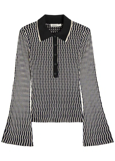 Miller Long-sleeve Stripe Polo Sweater In Blue